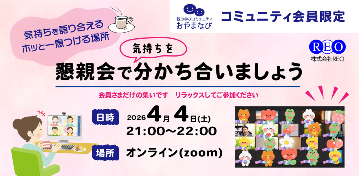 不登校のお子さんを持つ保護者の方が、安心して話したり、誰かの言葉に耳を傾けたりできるオンライン懇親会を開催します。