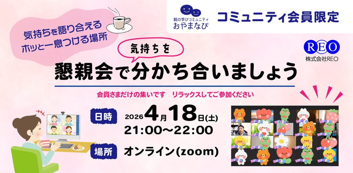 不登校のお子さんを持つ保護者の方が、安心して話したり、誰かの言葉に耳を傾けたりできるオンライン懇親会を開催します。