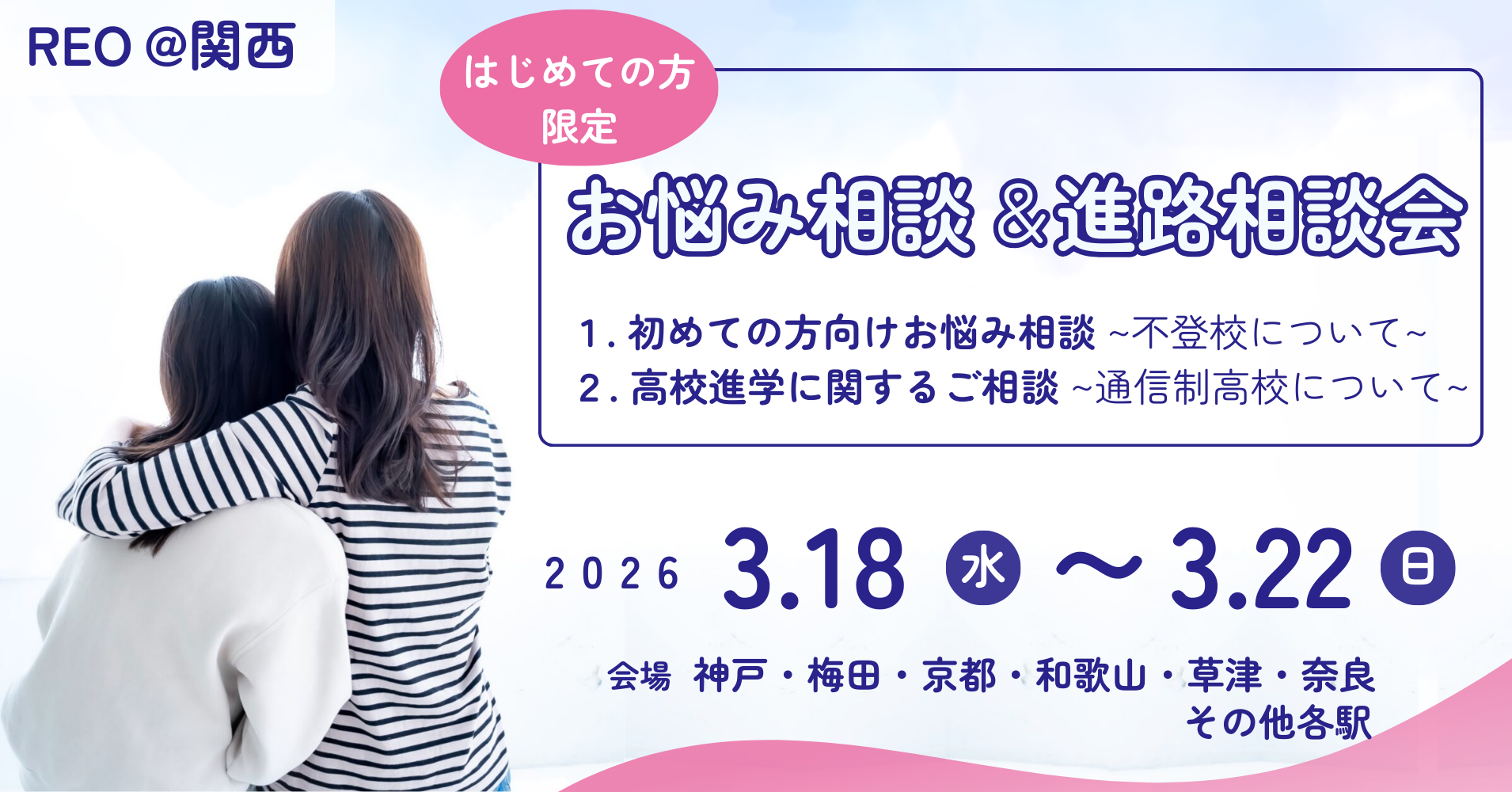 3月18日(水)~3月22日(日)に関西地域にて「はじめての方限定 お悩み相談&進路相談会 」を開催いたします。
