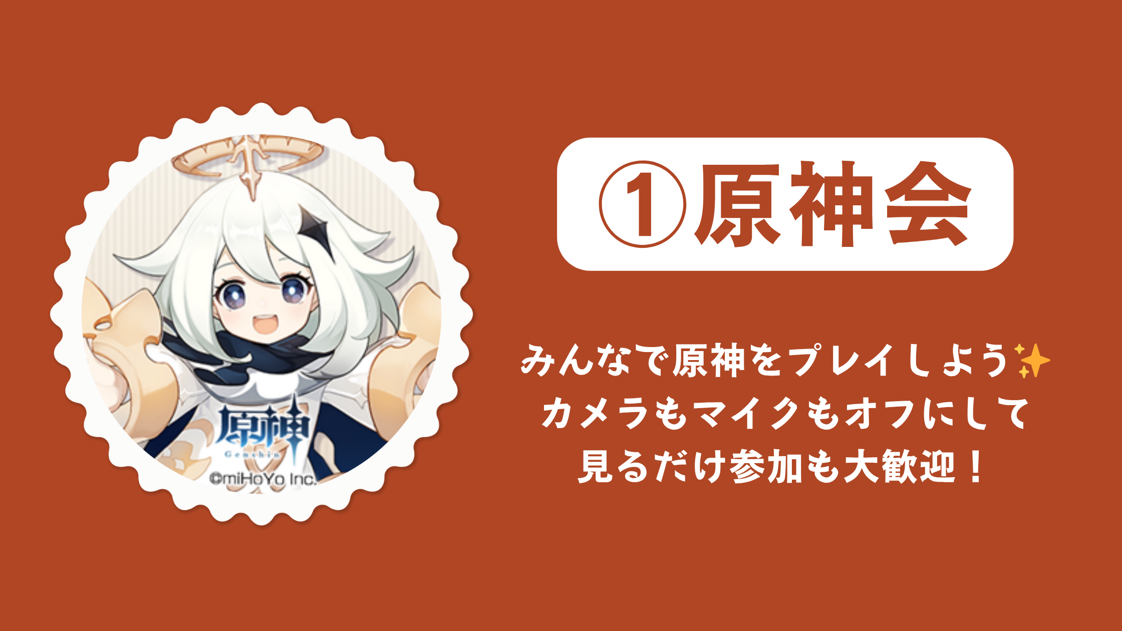 ①オンライン:原神会(オープンワールドRPGゲーム)