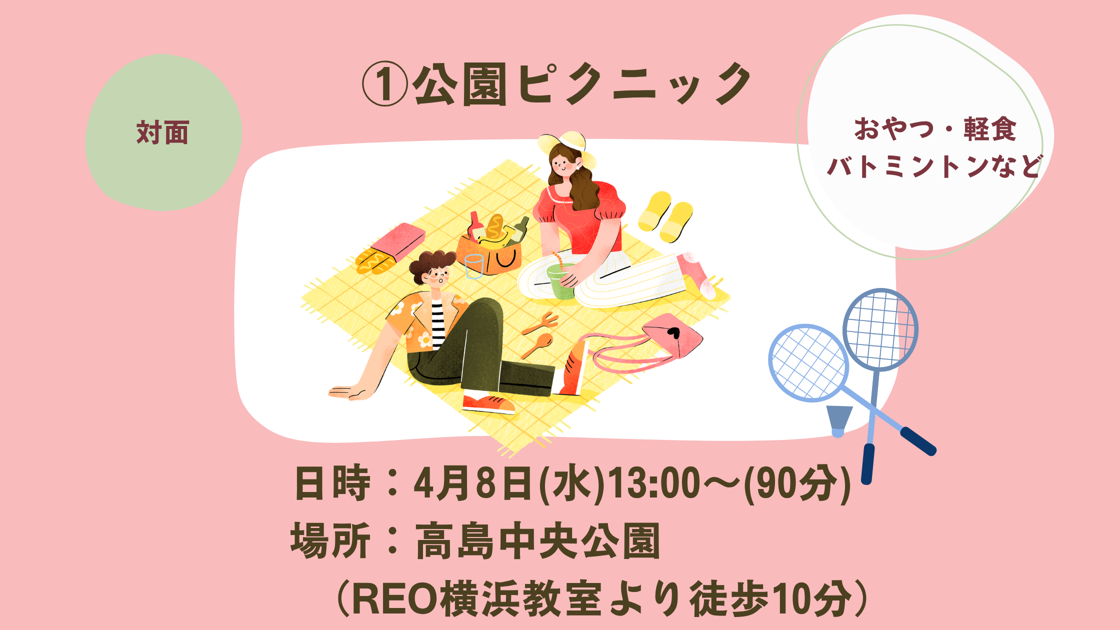 REO横浜教室へ集合してから、公園にみんなで出かけて、ピクニックをする予定です。